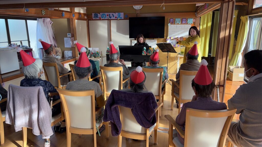 HOME > ピアノ教室 > ピアノ教室 デイサービスでクリスマス演奏 2025/12/25 12/23 デイサービスいずみの家にて クリスマスコンサート😊 10名の参加でした スタッフの方も含めて15名 ショパンのノクターン クリスマス曲 昭和のヒット曲 などなど 約45分のコンサートでした -ピアノ教室 Twitter Facebook Google+ Pocket B!はてブ LINE